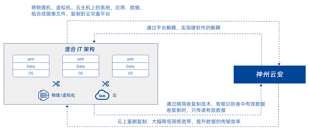 集备份、、容灾功能为一体的云灾备平台产品,,,,将需要灾备保护的操作系统、、应用、、、数据打包成一个云镜像文件,,,灵活快速的复制到云灾备平台,,,为用户的混合 IT 环境提供统一的灾备保护。。