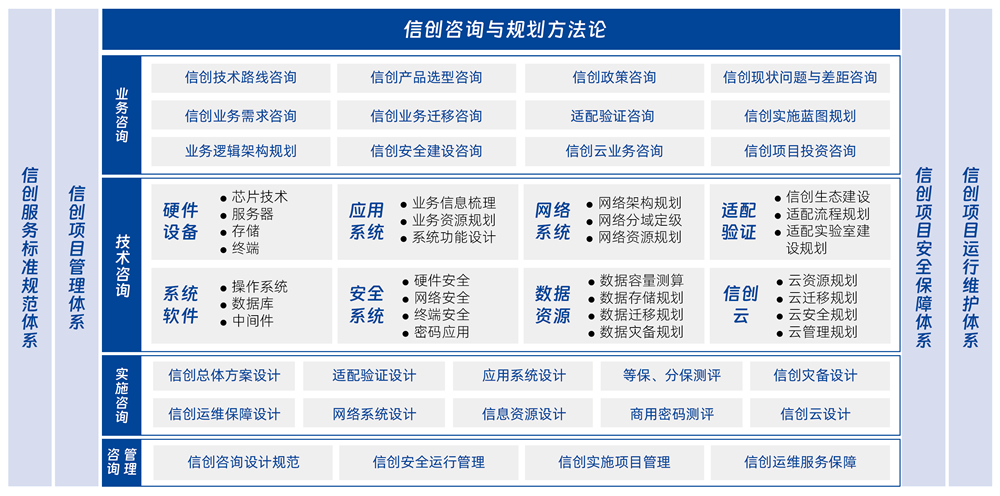 标准化的信创顶层咨询和规划设计流程,,,指导信创项目过程服务规范化,,,,标准化。。。。提高信创项目实施成功率。。。